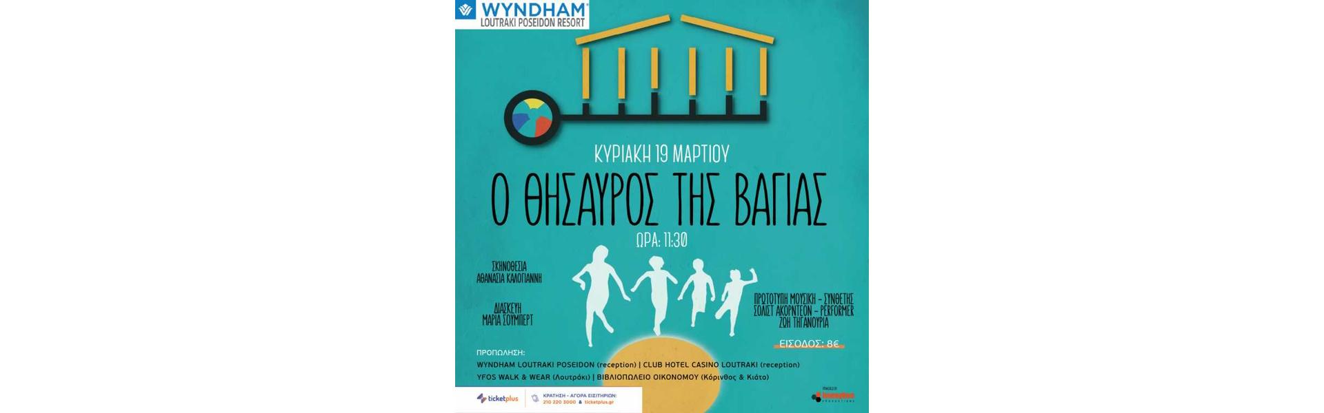 Με μεγάλη χαρά, αισιοδοξία και ενθουσιασμό η θεατρική ομάδα της Kids Theater υπό τις σκηνοθετικές οδηγίες της Αθανασίας Καλογιάννη θα ζωντανέψει στις 19 ΜΑΡΤΙΟΥ , 11:30 το πρωί, στο Wyndham Poseidon Loutraki Resort το πιο αγαπημένο βιβλίο των παιδικών μας χρόνων: τον Θησαυρό της Βαγίας της Ζωρζ Σαρή.
