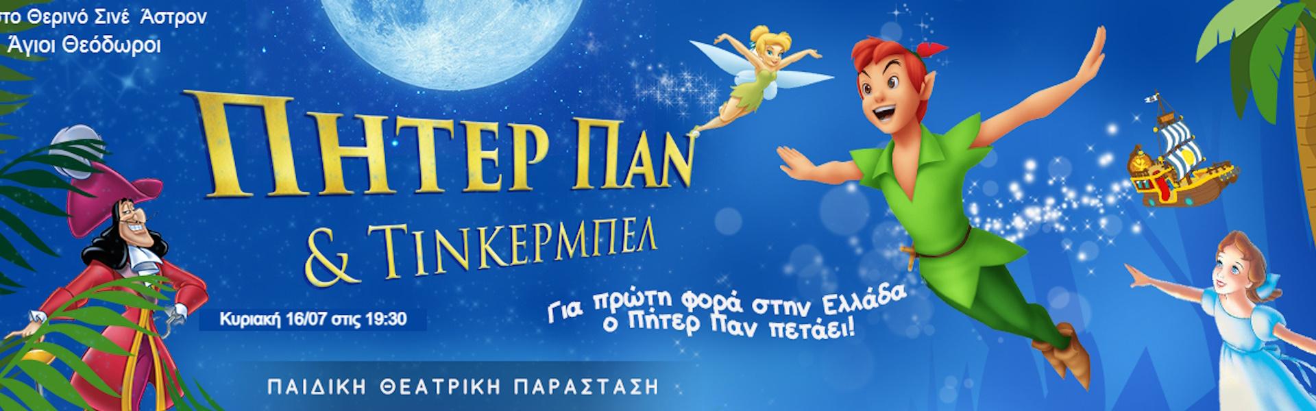 Η πιο διαδραστική παιδική παράσταση, παρουσιάζεται για πρώτη φορά, με τον Πήτερ Παν , την Τίνκερμπελ και την Γουέντυ να πετάνε ολοζώντανα μπροστά στους θεατές (!) στο θερινό Κινηματοθέατρο Άστρον - Αγίους Θεοδώρους στις 16/07 και ώρα 19:30