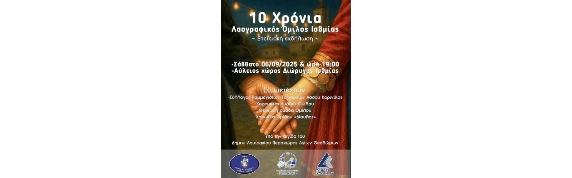 Ο Εξωραϊστικός & Εκπολιτιστικός Σύλλογος Ισθμίας, με 52 χρόνια αδιάλειπτης προσφοράς στον πολιτισμό, σας προσκαλεί
