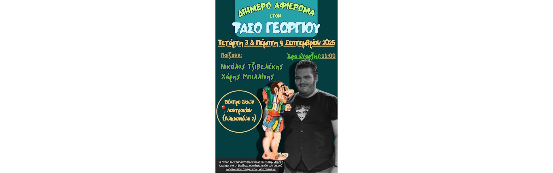Στο θέατρο σκιών Λουτρακίου θα πραγματοποιηθούν δύο τελευταίες παραστάσεις αφιερωμένες στη μνήμη του Τάσου Γεωργίου την Τετάρτη 3 και την Πέμπτη 4 Σεπτεμβρίου 2025.