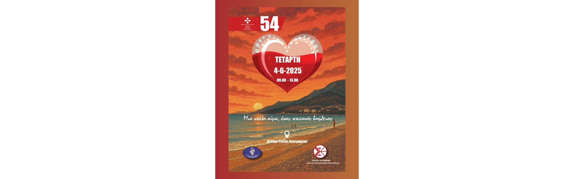 για την 54η Εθελοντική Αιμοδοσία της Δημοτικής Τράπεζας Αίματος του Δήμος Λουτρακίου – Περαχώρας – Αγίων Θεοδώρων.