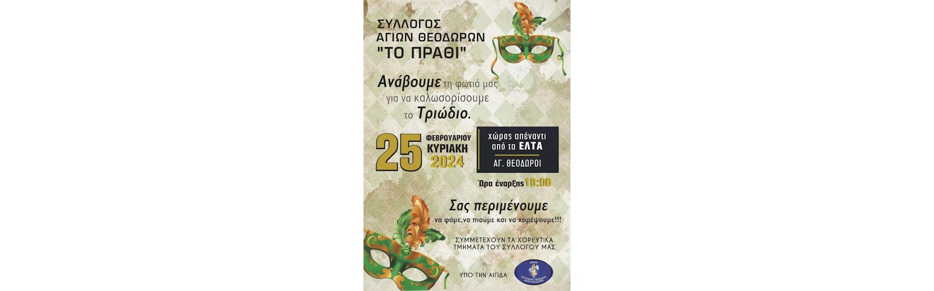 Την Κυριακή 25 Φεβρουαρίου 2024 | ώρα 18.00 | Αγ. Θεόδωροι (απέναντι απο τα ΕΛΤΑ)