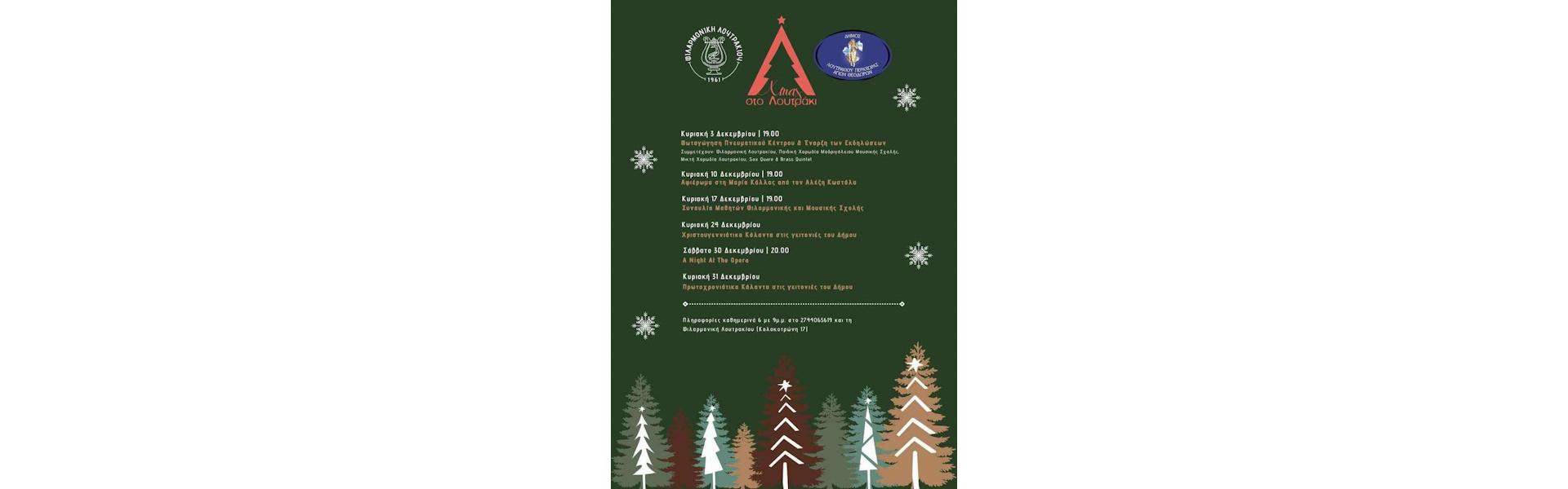 Πιο αναλυτικά για την εκδήλωση που θα πραγματοποιηθεί στο Λουτράκι, θα τελεστεί υπό την αιγίδα του δήμου Λουτρακίου- Περαχώρας- Αγίων Θεοδώρων