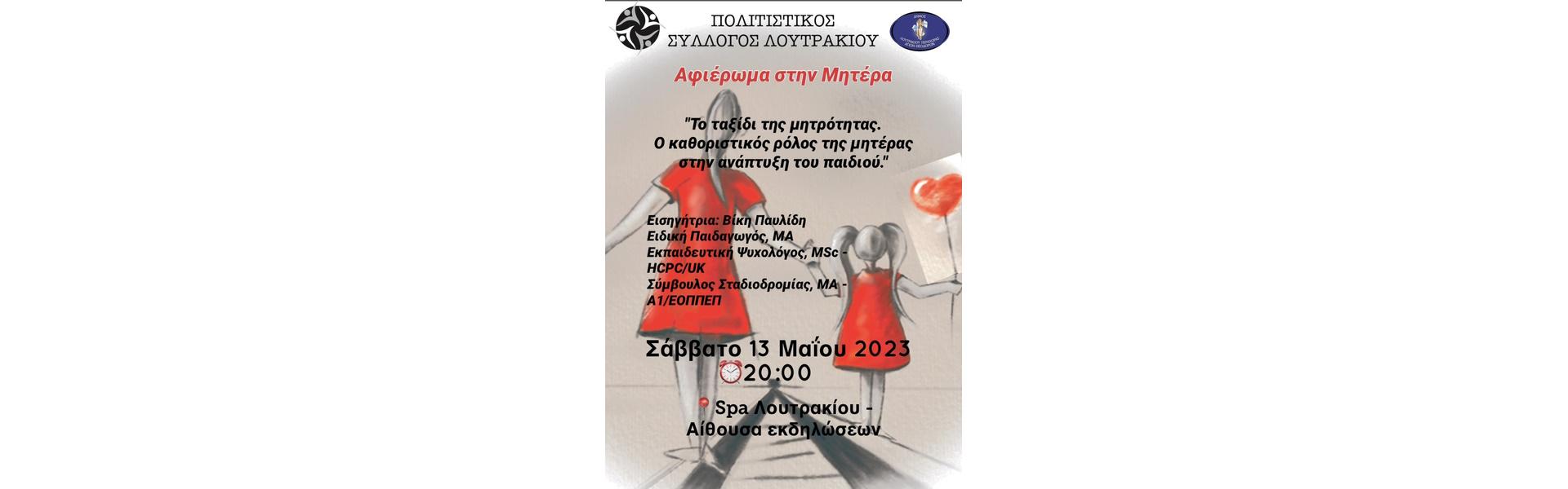 Με αφορμή την παγκόσμια ημέρα της Μητέρας, ο Πολιτιστικός Σύλλογος Λουτρακίου διοργανώνει εκδήλωση που αποτελεί ύμνο στη μητέρα.
