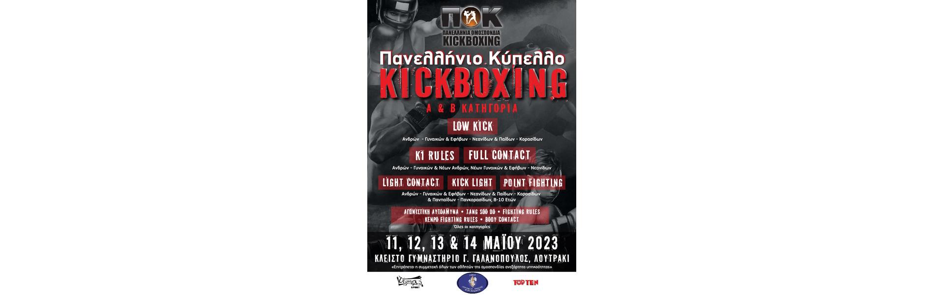 Έρχεται από την ΠΟΚ ( Πανελλήνια Ομοσπονδία KICKBOXING ) το Πανελλήνιο Κύπελλο KICKBOXING A & B ΚΑΤΗΓΟΡΙΑ 2023 στο Λουτράκι