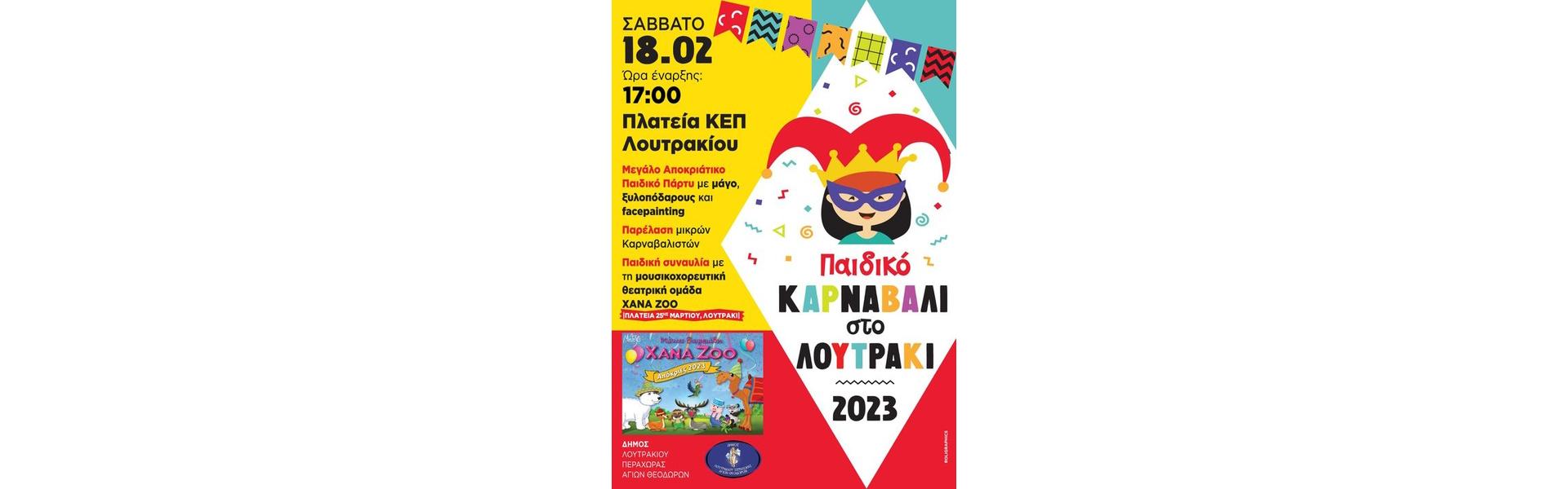 Παρέλαση μικρών Καρναβαλιστών| ώρα συγκέντρωσης 17:00 | Πλατεία ΚΕΠ Λουτρακίου |