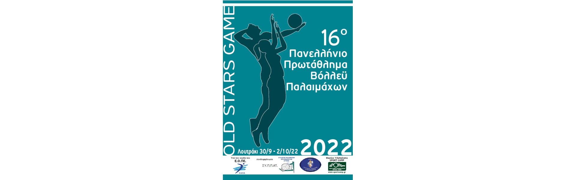 Το Λουτράκι είναι έτοιμο να υποδεχτεί τους βετεράνους αθλητές στο 16ο Πανελλήνιο πρωτάθλημα βόλεϊ Old Stars Game, που θα πραγματοποιηθεί από τις 30 Σεπτεμβρίου έως και τις 2 Οκτωβρίου 2022, στο Κλειστό Γυμναστήριο του SportCamp.