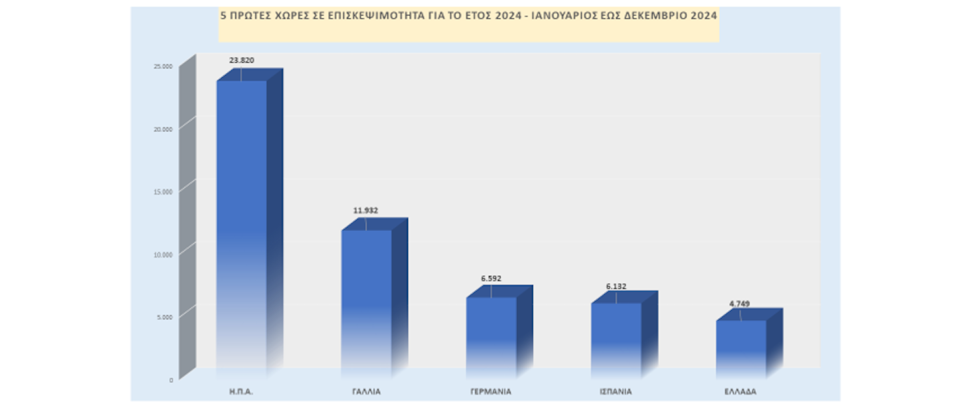 Οι κυρίαρχες χώρες που ξεχώρισαν για ακόμη μια χρονιά είναι η Η.Π.Α, η ΓΑΛΛΙΑ και η ΓΕΡΜΑΝΙΑ. Ακολουθούν με τη σειρά τους με εξίσου σημαντικό μερίδιο επισκεπτών η Ισπανία και η Ελλάδα.