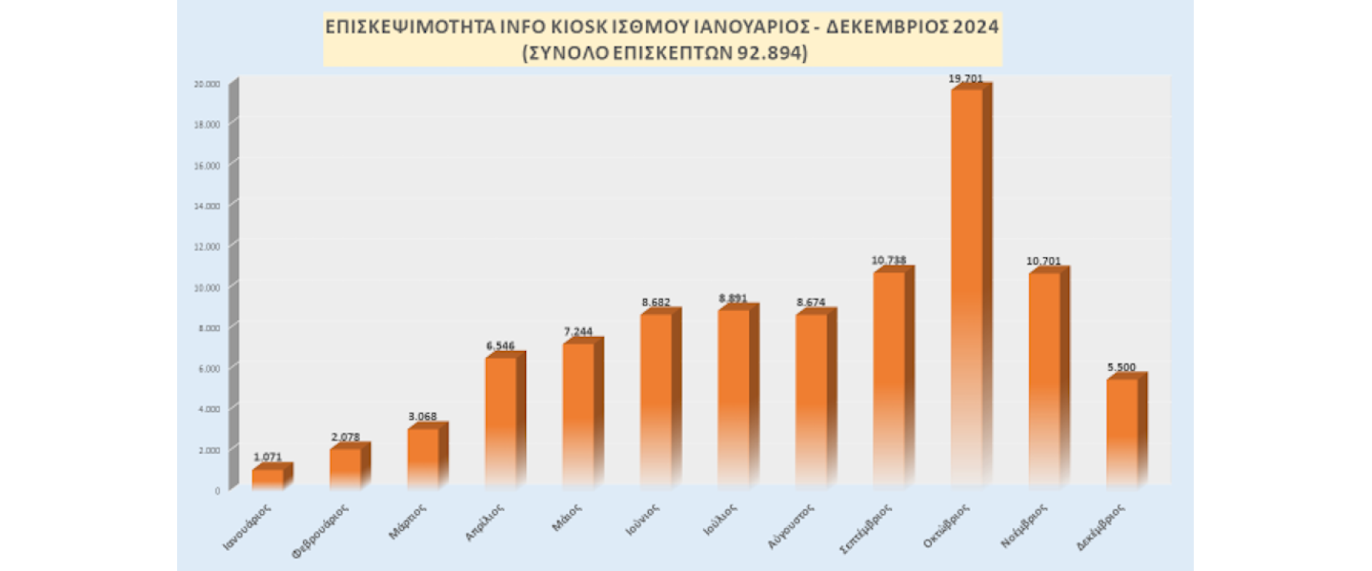 Εξαιρετική αναδείχθηκε η επισκεψιμότητα στο Info Kiosk του Ισθμού για το 2024, καθώς υποδέχθηκε και εξυπηρέτησε 92,894 επισκέπτες από συνολικά 79 χώρες.