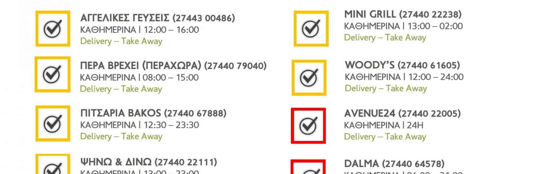 Στο πλαίσιο της λήψης έκτακτων μέτρων που αφορούν τις τουριστικές επιχειρήσεις λόγω του κορωνοϊού Covid-19, οι επιχειρήσεις εστίασης – μέλη του LTO έχουν διαμορφώσει το πρόγραμμα λειτουργίας τους σύμφωνα με τον παρακάτω πίνακα.