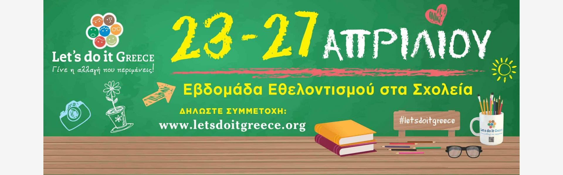 We give the leading role to the students, teachers and parents of the municipal schools focusing on "Let's do it GREECE" Weekly Volunteer Week, which will be held from Monday 23 to Friday April 27, 2018.