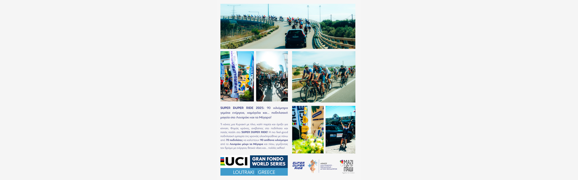 SUPER DUPER RIDE 2025: 90 χιλιόμετρα γεμάτα ενέργεια, χαμόγελα και… ποδηλατική μαγεία στο Λουτράκι και τα Μέγαρα!