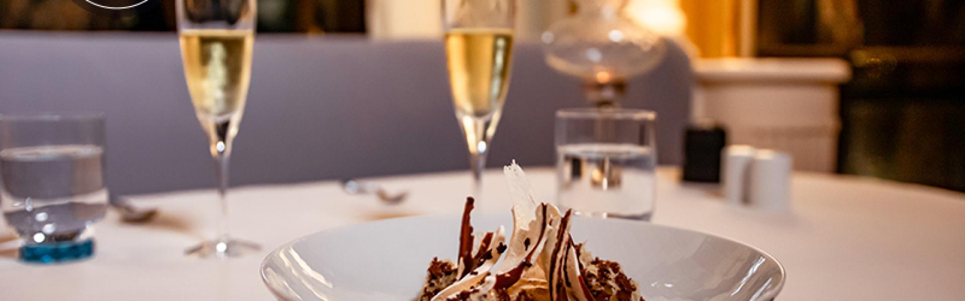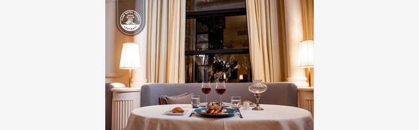 The culinary experience unfolds in a hall of neoclassical elegance, where crystal chandeliers and an evocative warmth create the ideal setting for winter and spring evenings.
