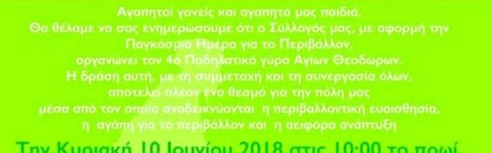 The Parents and the Guardians Association of 2nd Primary School of Agioi Theodoroi, on the occasion of World Environment Day, organizes the 4th Cycling Round of Agioi Theodoroi, on Sunday 10 June at 10.00 am.