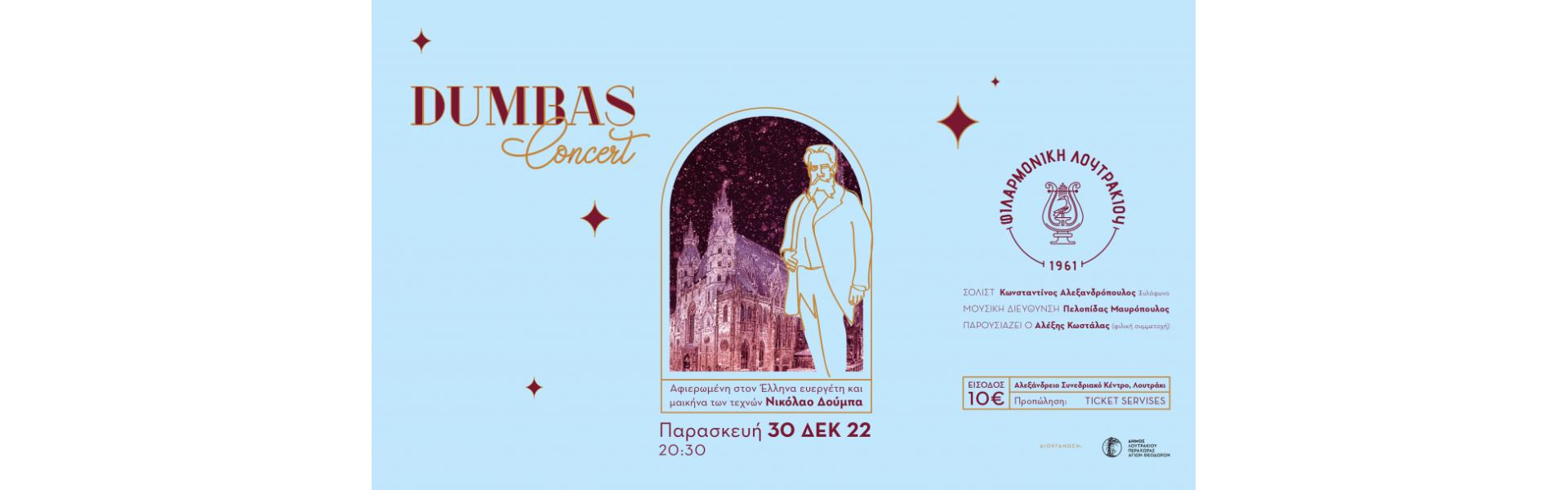 The traditional New Year's concert of the Philharmonic Orchestra of Loutraki is this year entitled "Dumbas Concert" and is dedicated to Nikolaos Dumbas, the Greek patron of the arts and great benefactor of Greece and Austria.