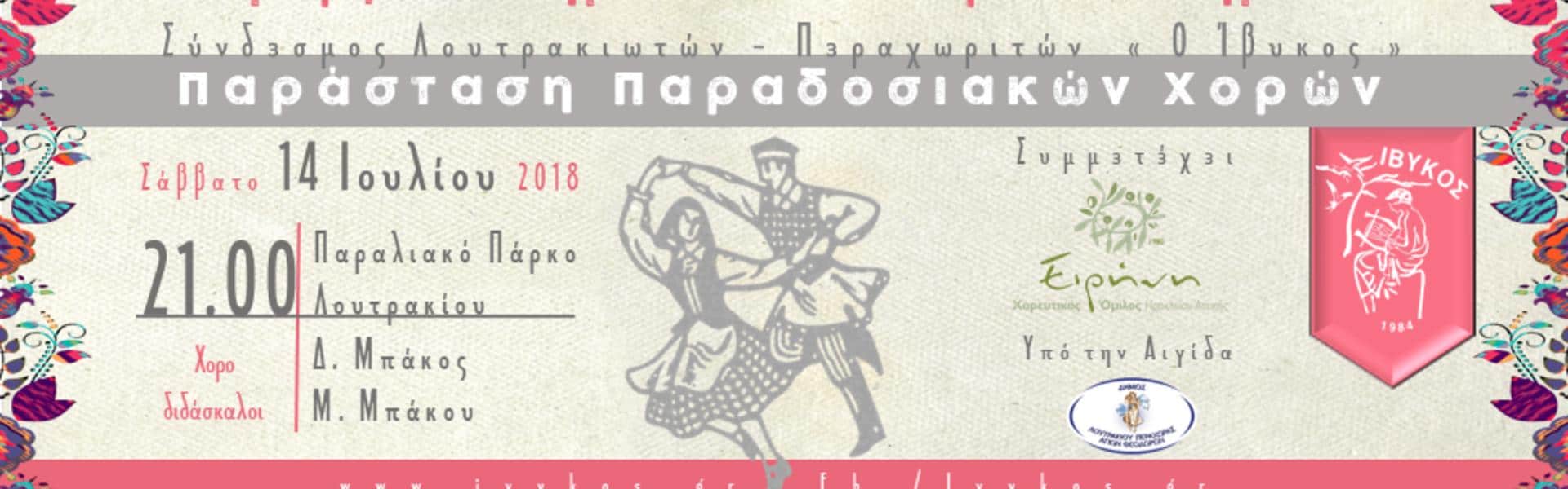 Saturday, 14 July, 2018 - 21:00Association of Loutrakiotes - Perachorites «Ivykos»Annual Musical-Dance Performance of Traditional Dances, of Teenage, Ladies' & Beginners Departments ivykos-afisa_kalokairinis_parastasis_2018.jpg Cultural