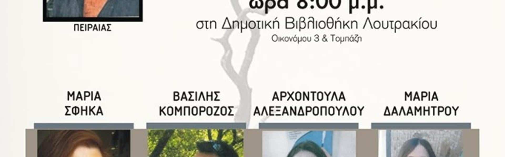 Presentation of books by 4 major modern poets on Saturday 29 June at 8.00 pm in the Municipal Library of Loutraki. Revenues from the sale of books will be made available for charity. The event is under the auspices of the Municipality of Loutraki - Perachora - Agion Theodoron.