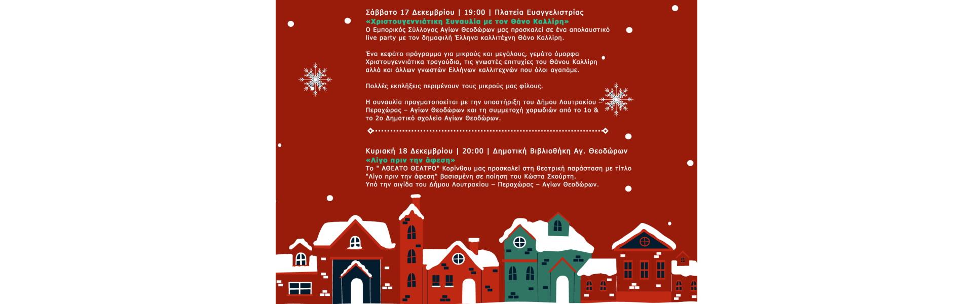 The premiere of the events takes place with the concert Merry Christ-must "A warm brass welcome" by the brass quintet of the teachers of the Loutraki Philharmonic, on Saturday, December 12, 2020 at 21.00.