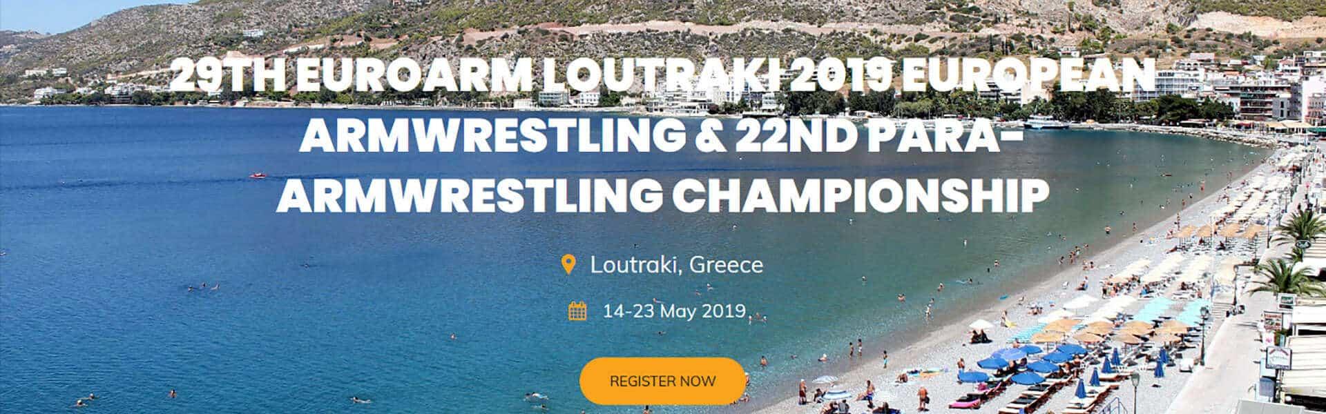 Μία Πανευρωπαϊκή, επίσημη διοργάνωση υψηλών προδιαγραφών έρχεται σε λίγες μέρες στο Λουτράκι! Το 29ο Ευρωπαϊκό Πρωτάθλημα Χειροπάλης και το 22ο Ευρωπαϊκό Πρωτάθλημα Χειροπάλης ΑΜΕΑ θα διεξαχθούν στο Λουτράκι! Από 14 έως 23 Μαΐου 2019, 1000 αθλητές και συνοδοί από 37 Ευρωπαϊκές χώρες θα διαγωνιστούν σε 9 Ηλικιακές Κατηγορίες στο Armwrestling και σε 8 Κατηγορίες στο Para-Armwrestling. Η διοργάνωση θα διεξαχθεί στο Κλειστό Γήπεδο Λουτρακίου «Γεώργιος Γαλανόπουλος», που για ακόμη μία φορά θα φιλοξενήσει μία Διεθνή διοργάνωση!